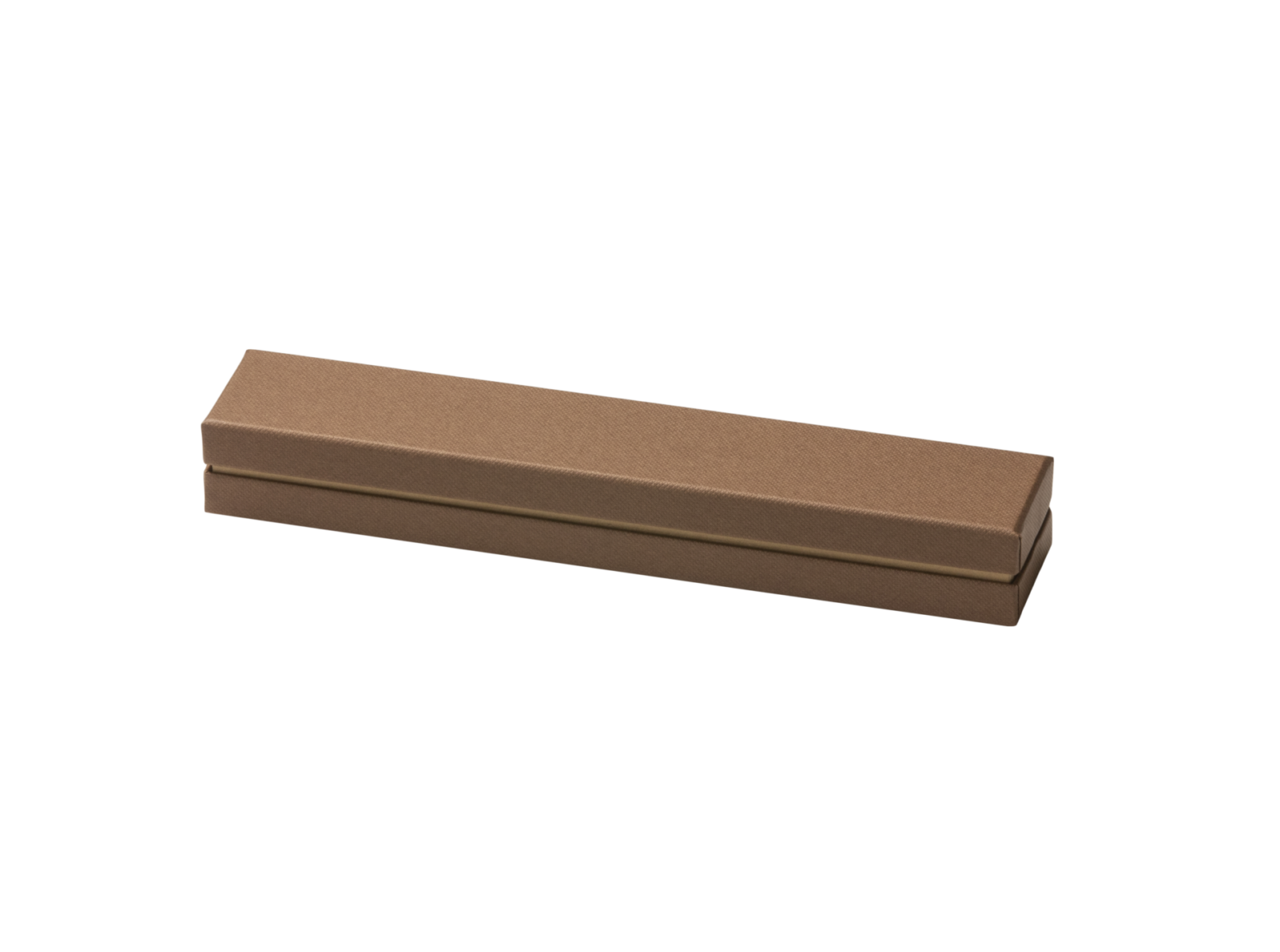 7155-NC コンビA(隙間ありインロー型)ツートーンカラーの紙を使用した角型のインローボックスです。コンビA(隙間ありインロー型)ミ(下箱)とフタ(上箱)が同じ大きさで、その間に少し小さいもう一つの箱を入れて、挟み合わせたような形になっています。ミとフタの間から覗くカラーがアクセントになり、ジュエリーの輝きを引き立てます。品番7155発注単位12材料本体=紙中入れ=ネックレス台紙内寸215×35×26mm色黒×ゴールド、白×シルバー、茶×ゴールドアイテムバリエーション